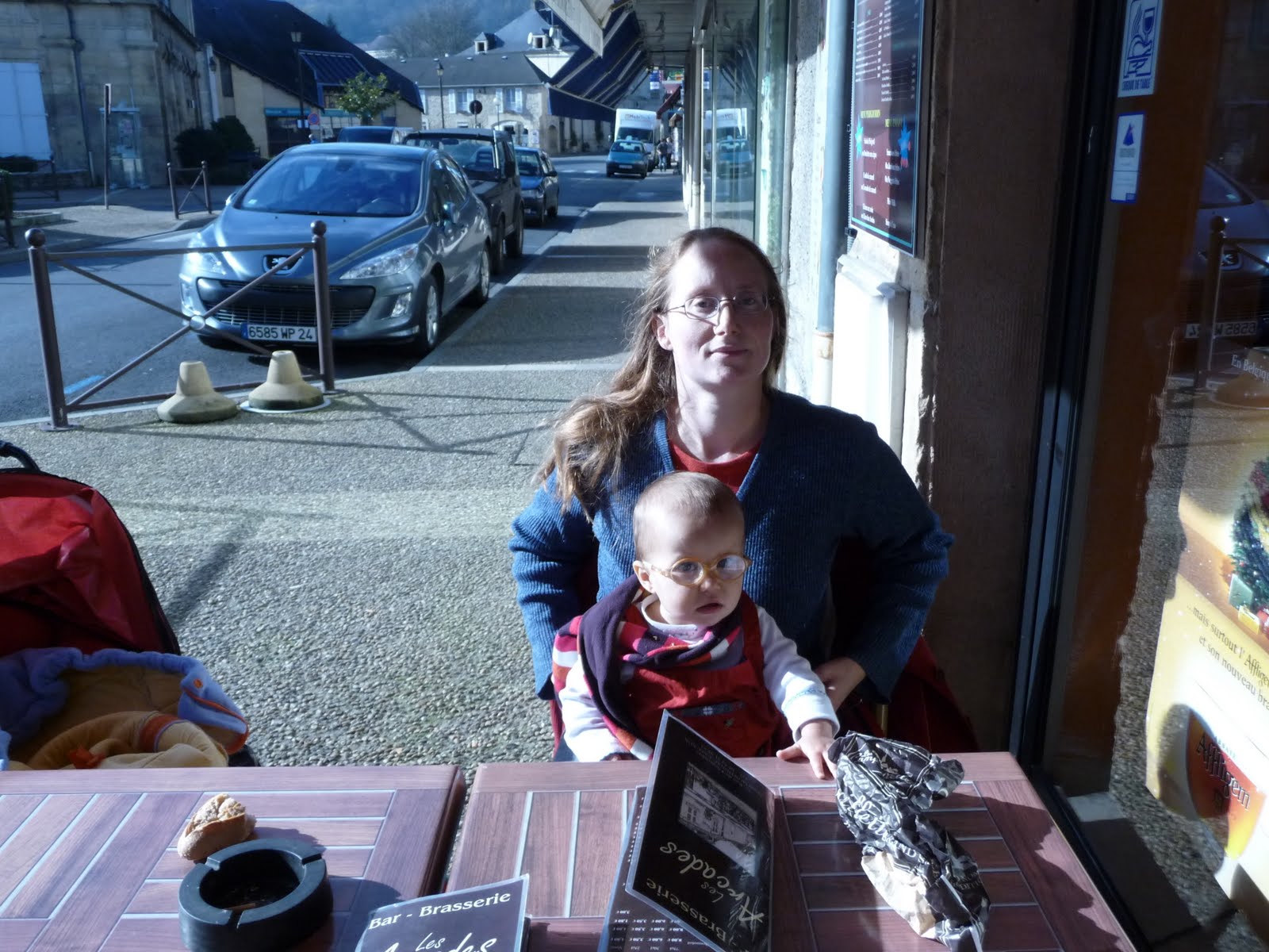 Nous avons garé la voiture et sommes allées prendre un petit déjeuné bien mérité dans une boulangerie. J'en ai profité pour habiller Lucie. Le ventre plein et les pieds réchauffés nous sommes sorties pour 1h30 de balade dans Terasson.