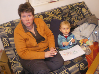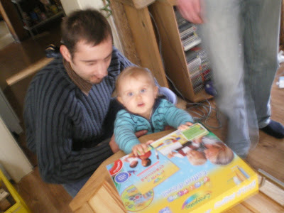 Vers 10 heures direction la chambre pour un petit dodo (j'avais mis un petit peu de chauffage, vous imaginez pas le luxe que c'est), réussite du montage du lit parapluie et dodo ALoys. Je ne l'ai pas entendu, je suis allée le rechercher vers 11 heures et je ne suis pas sure qu'il ai dormi mais il était tout calme. Je l'ai pris et c'était de nouveau parti pour une séance de jeux. Il en a profité pour écrire un mail à son papa et sa maman pour leur dire que tout allait bien.