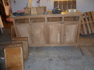 C'est la partie la plus drôle ... le ponçage. J'ai filé chez mon papa pour chercher sa ponceuse et je me suis attelée à la tâche.