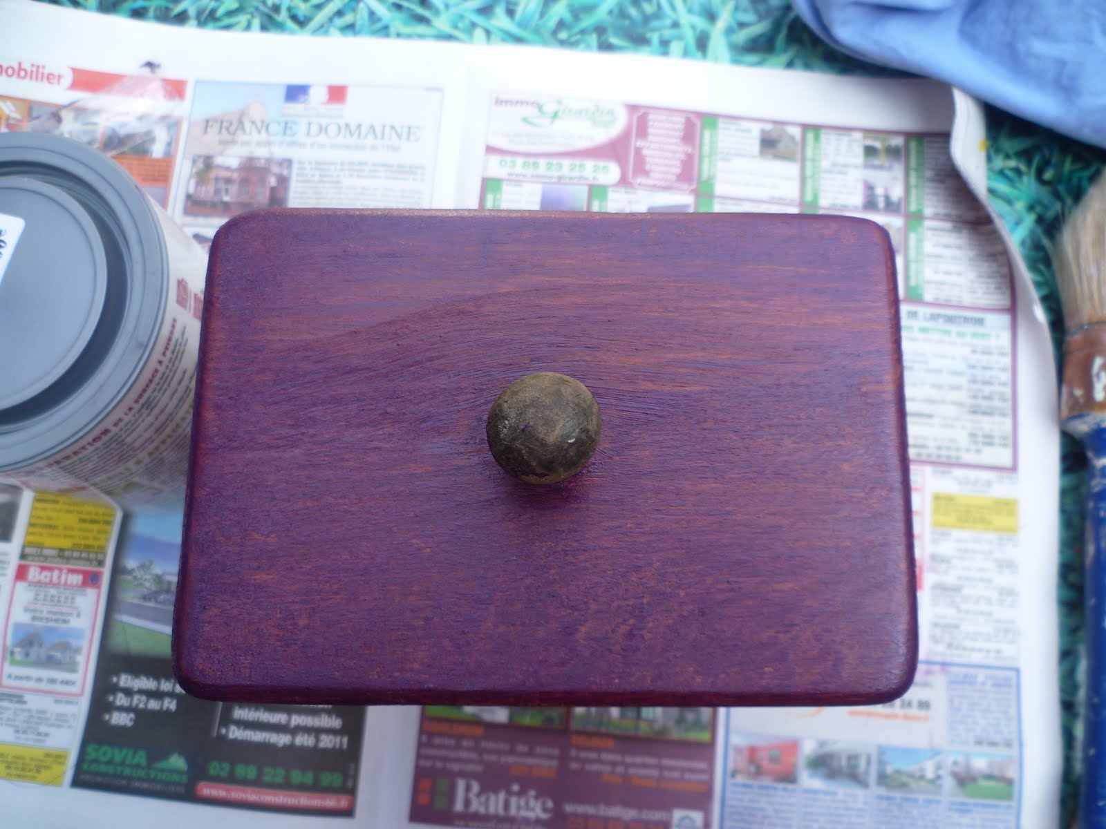 Du violet sur un petit tiroir qui ira sur le haut du meuble.